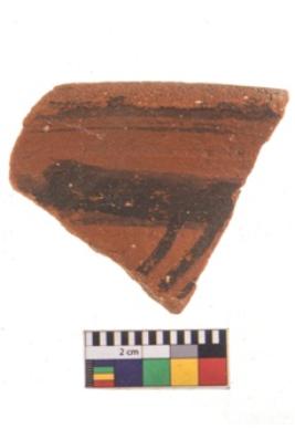 | Description / विवरण | Specimen of potsherd with black decorative geometric painting. Type Black on Red Ware . |