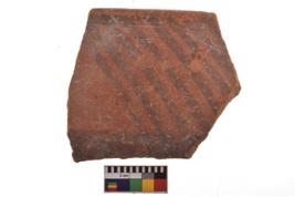 | Description / विवरण | Specimen of black on red ware with decorative geometric Outcurved lines painting. |