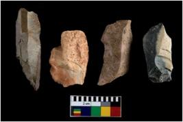 | Description / विवरण | There are n-4 of intact utilized flakes made up of Chert. Some of them have bulge of percussion, some are flat flakes and few are retouched. |