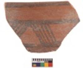 | Description / विवरण | Specimen of potsherd with decorative geometric Linear Pattern painting, Type Black on Red Ware . |