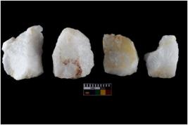 | Description / विवरण | There are n-4 of intact utilized flake cores made up of Quartz. Some of them have bulge of percussion and some are flat flakes. |