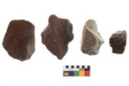 | Description / विवरण | Specimen of cores with visible weathered cortex and few broad fluted marks. Almost all are irregular in shape and size.Almost all are tapering at one end. |