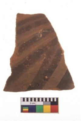 | Description / विवरण | Specimen of potsherd with black decorative geometric painting. Type Black on Red Ware . |