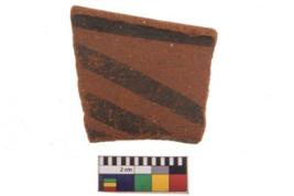 | Description / विवरण | Specimen of potsherd with black decorative geometric painting. Type Black on Red Ware . |