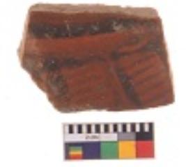 | Description / विवरण | Specimen of black on red ware with decorative black pigment. |