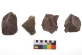 | Description / विवरण | Specimen of cores with visible weathered cortex and few broad fluted marks. Almost all are irregular in shape and size.Almost all are tapering at one end. |