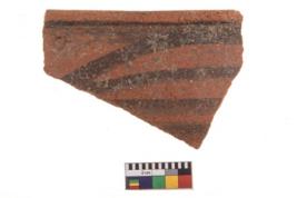 | Description / विवरण | Specimen of potsherd with black decorative geometric painting. Type Black on Red Ware . |