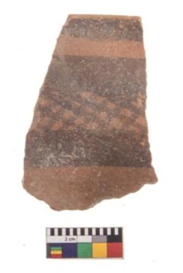 | Description / विवरण | Specimen of potsherd with black decorative geometric painting. Type Black on Red Ware . |