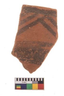 | Description / विवरण | Specimen of potsherd with black decorative geometric painting. Type Black on Red Ware . |