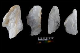 | Description / विवरण | There are n-4 of intact utilized flake cores made up of Quartz. Some of them have bulge of percussion and some are flat flakes. |