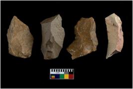 | Description / विवरण | There are n-4 of intact utilized flakes made up of Chert. Some of them have bulge of percussion, some are flat flakes and few are retouched. |