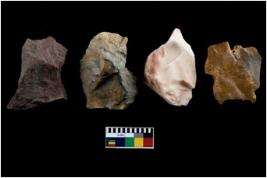 | Description / विवरण | There are n-4 of intact utilized flakes made up of Chert. Some of them have bulge of percussion, some are flat flakes and few are retouched. |