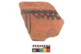 | Description / विवरण | Specimen of potsherd with black decorative geometric painting. Type Black on Red Ware . |