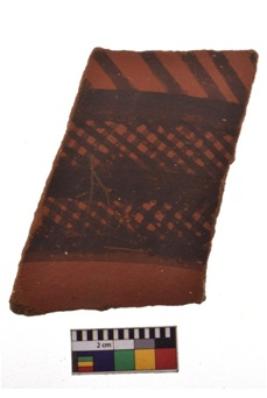 | Description / विवरण | Specimen of black on red ware with decorative geometric Outcurved lines and net motif painting. |