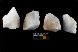 | Description / विवरण | There are n-4 of intact utilized flake cores made up of Quartz. Some of them have bulge of percussion and some are flat flakes. |