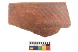 | Description / विवरण | Specimen of potsherd with black decorative geometric painting. Type Black on Red Ware . |