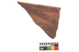 | Description / विवरण | Specimen of potsherd with black decorative geometric painting. Type Black on Red Ware . |