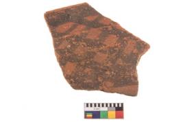 | Description / विवरण | Specimen of potsherd with black decorative geometric painting. Type Black on Red Ware . |