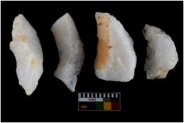 | Description / विवरण | There are n-4 of intact utilized flake cores made up of Quartz. Some of them have bulge of percussion and some are flat flakes. |