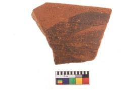 | Description / विवरण | Specimen of potsherd with black decorative geometric painting. Type Black on Red Ware . |
