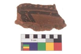 | Description / विवरण | Specimen of a potsherd with black decorative geometric painting on it. It has group of oblique lines set two horizontal bands |