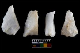 | Description / विवरण | There are n-4 of intact utilized flake cores made up of Quartz. Some of them have bulge of percussion and some are flat flakes. |