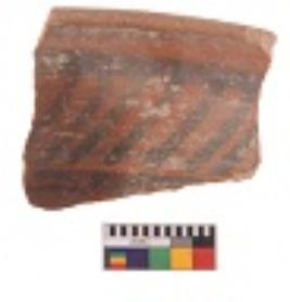 | Description / विवरण | Specimen of potsherd with decorative geometric Linear Pattern painting, Type Black on Red Ware . |