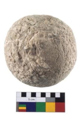 | Description / विवरण | A partially broken specimen of roughly round shaped hammer stone with battered periphery along with the circumference. |