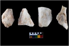 | Description / विवरण | A specimen of a fluted Core with several broad fluted marks indicating the detached blades from it. |