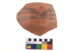 | Description / विवरण | Specimen of potsherd with black decorative geometric painting. Type Black on Red Ware . |