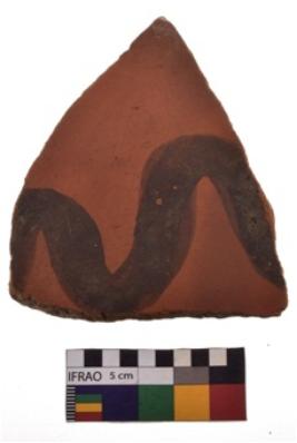 | Description / विवरण | Specimen of black on red ware with decorative geometric Vertical zigzag band painting. |