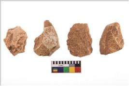 | Description / विवरण | Four flakes; most of them are tapering at one end with sharp edges. |