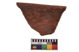 | Description / विवरण | Specimen of black on red ware with decorative geometric Two horizontal bands containing criss-cross pattern painting. |