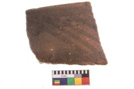 | Description / विवरण | Specimen of potsherd with black decorative geometric painting. Type Black on Red Ware . |