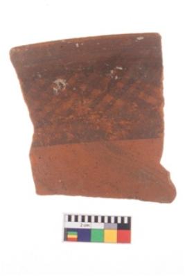| Description / विवरण | Specimen of potsherd with black decorative geometric Net Pattern painting . |