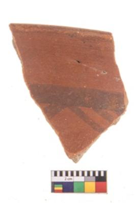| Description / विवरण | Specimen of potsherd with black decorative geometric painting. Type Black on Red Ware . |