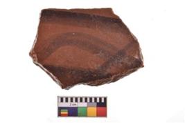 | Description / विवरण | Specimen of black on red ware with decorative geometric Its decorated with two horizontal bands with sets of triple arches painting. |