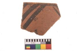 | Description / विवरण | Specimen of potsherd with black decorative geometric painting. Type Black on Red Ware . |