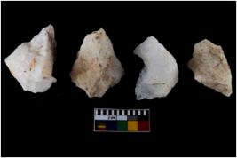 | Description / विवरण | There are n-4 of intact utilized flake cores made up of Quartz. Some of them have bulge of percussion and some are flat flakes. |