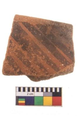 | Description / विवरण | Specimen of potsherd with black decorative geometric painting. Type Black on Red Ware . |