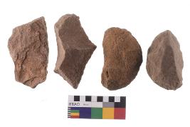 | Description / विवरण | There are n-4 of utilized flake cores. There are multidirectional irregular dominant scar pattern on both dorsal and ventral face of the cores. |