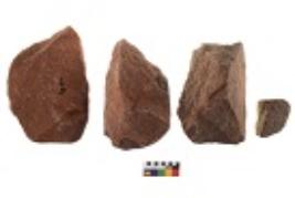 | Description / विवरण | Specimen of cores with visible weathered cortex and few broad fluted marks. Almost all are irregular in shape and size. Most of them are having sharp edges. |