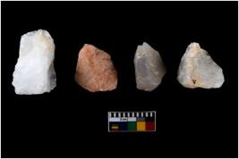 | Description / विवरण | A specimen of a fluted Core with several broad fluted marks indicating the detached blades from it. |
