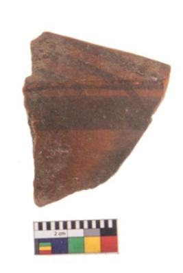 | Description / विवरण | Specimen of potsherd with black decorative geometric painting. Type Black on Red Ware . |
