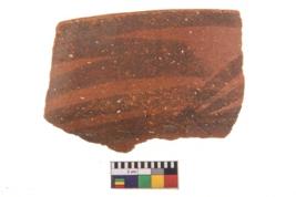 | Description / विवरण | Specimen of potsherd with black decorative geometric painting. Type Black on Red Ware . |
