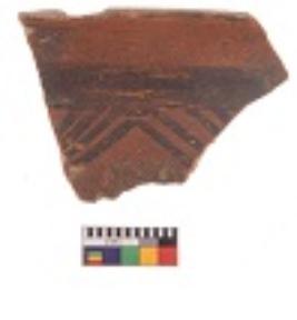 | Description / विवरण | Specimen of potsherd with decorative geometric Linear Pattern painting, Type Black on Red Ware . |