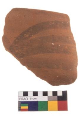 | Description / विवरण | Specimen of potsherd with black decorative geometric painting. Type Black on Red Ware . |