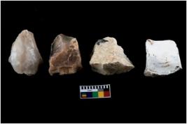 | Description / विवरण | There are n-4 of intact flake cores. Out of them 1 is made up Chalcedony and 3 are made up of Chert.There are multidirectional irregular dominant scar pattern on both dorsal and ventral face of the cores. |