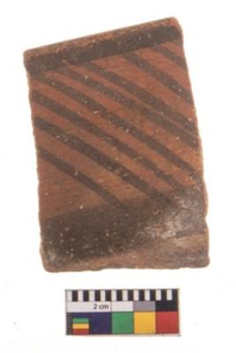 | Description / विवरण | Specimen of potsherd with black decorative geometric painting. Type Black on Red Ware . |
