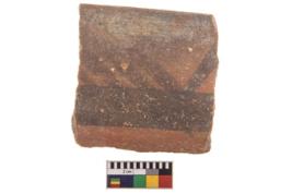 | Description / विवरण | Specimen of black on red ware with decorative geometric Groups of oblique strokes set in horizontal bands on the exterior painting. |